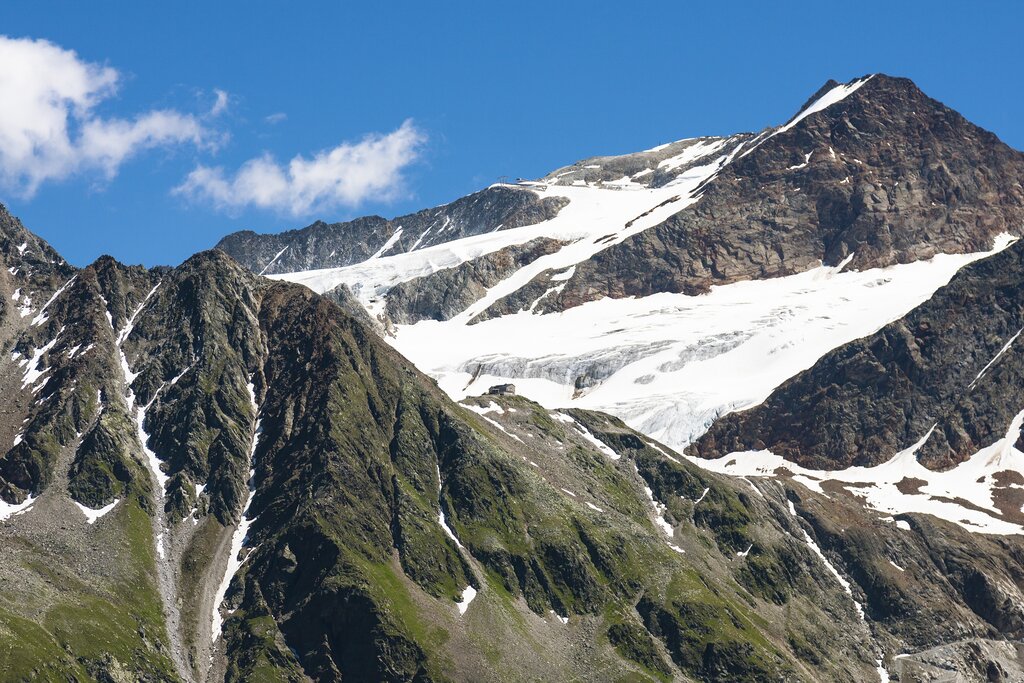 <Du steigst ab von der Larcheralm ins Pitztal. Öffentliche Verkehrsmittel (Postbus) bringen dich von Wenns ausgehend tief hinein ins Tal nach Mittelberg. Nun steigst du etwa 1.000 Meter auf zur Braunschweiger Hütte. Entlang der jungen Pitze wanderst du vorbei am Gletscherstüble und in Serpentinen hinauf zur Braunschweiger Hütte in den Ötztaler Alpen auf 2.759 Metern Höhe.