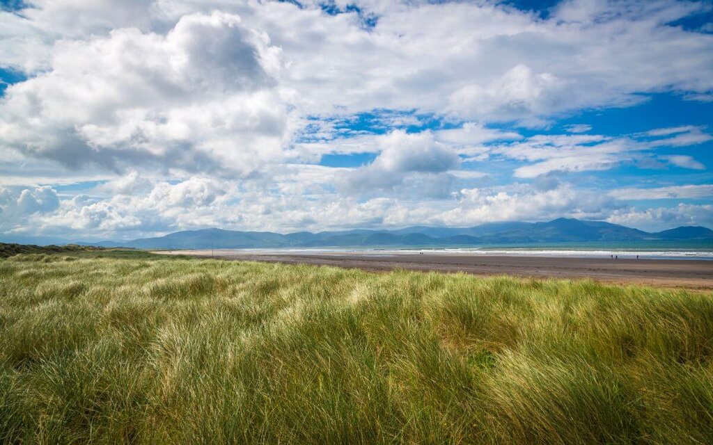 <Die siebte Etappe des Dingle Way ist mit 27 Kilometern zwar lang, aber relativ flach, sodass du entspannt entlang der Küste wandern kannst. Begleitet wirst du von endlosen Sandstränden. Zu Beginn geht es über zwei Hügel, bis du bei Fermoyle den ersten Strand erreichst. Der 14 Kilometer lange Abschnitt entlang der Brandon Bay bietet eine wunderschöne Kulisse mit Sanddünen und Bergen. Der Weg führt über den Scraggane Point weiter nach Kilshanning und schließlich nach Castlegregory, wo du dich nach der erfrischenden Seeluft in einer gemütlichen Unterkunft erholen kannst.