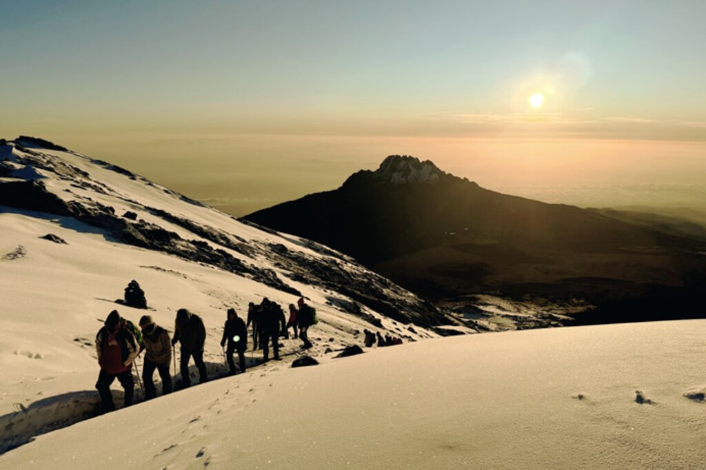 Im Gänsemarsch geht es Kopflampe an Kopflampe über große Felsplatten und -brocken in langsamen Tempo weiter hinauf. Die Luft wird dünner, du passierst den gigantischen Rebmann-Gletscher mit seinen kathedral-ähnlichen Eisformationen und stehst schon bald am Gipfel des Uhuru Peaks (5.895), wo dich atemberaubende Ausblicke auf die umliegende Landschaft und die Gletscher rund um den Kibo erwarten. Im Anschluss daran folgt ein ca. 3-stündiger Abstieg zurück zum Barafu Camp, wo zu Mittag gegessen wird, bevor du durch eine abwechslungsreiche Landschaft hinunter zum Mweka Camp (3.080 m) absteigst.