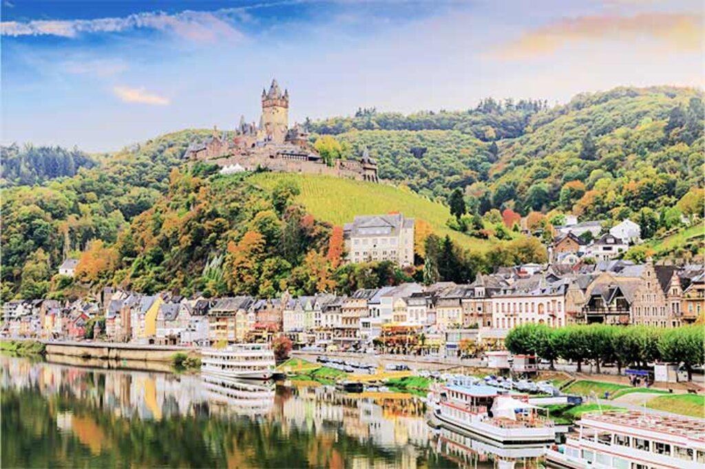 <Vom traditionsreichen Weinort Traben-Trarbach geht es am rechten Moselufer einen steilen Serpentinenpfad hinauf zur Ruine Grevenburg und dann weiter in einigen Kehren hinauf zur Bismarckhütte. Hier kannst du bei herrlicher Aussicht Rast machen, bevor es im Anschluss über waldige Pfade in das kleine Örtchen Enkirch geht. Auch hier finden sich zahlreiche Einkehrmöglichkeiten. Gegen Ende des Tages wanderst du durch malerische Weinberge weiter bis nach Reil.