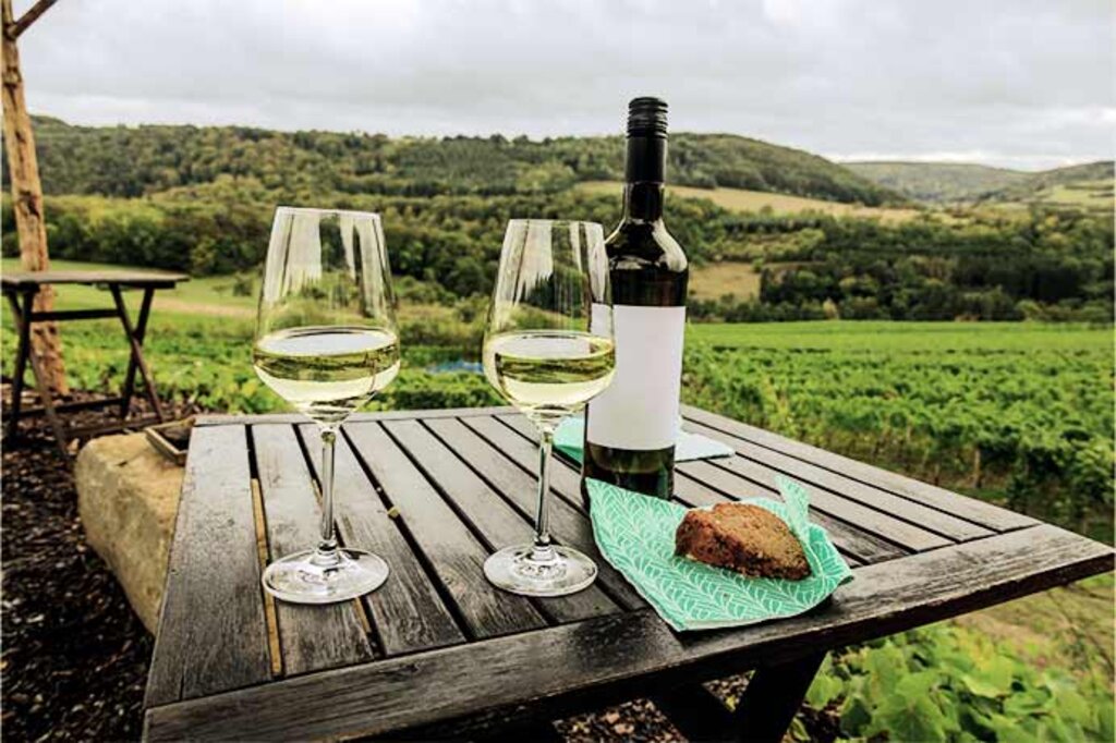 <Heute erwartet dich eine recht sportliche Etappe. Es geht bergauf bergab und du wirst immer wieder mit tollen Fern- und Tiefblicken belohnt. Zwischendurch bietet sich das Huxlay-Plateau zu einer entspannten Pause an. Im heutigen Etappenziel Mehring kannst du dann in einem der Gastronomiebetriebe die über 2000-jährige Weinbautradition hautnah miterleben.