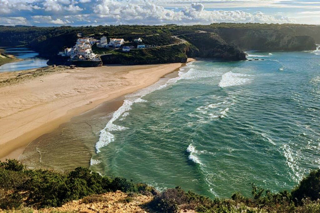 <Beim Fluss Mira bei Vila Nova de Milfontes hast du bereits zu Beginn dieser weniger anstrengenden Etappe einen tollen Ausblick auf das romantische Küstenstädtchen und die umliegende Vegetation. Vor allem Beeren wachsen im trockenen Buschland und ziehen viele Vogelarten an, die in den wärmeren Monaten hier ihr Nest bauen und sich um den Nachwuchs kümmern. Auf dem Weg nach Almograve kommst du an kleinen Fischereien vorbei, die die Region wirtschaftlich beleben.