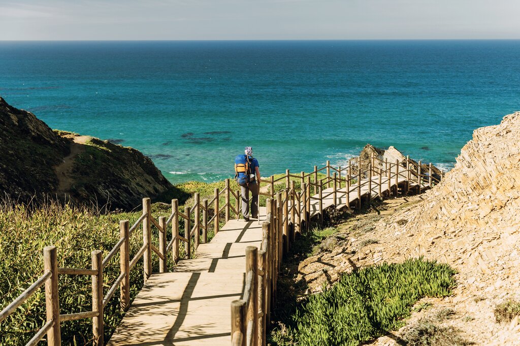75 Kilometer Sand, Meer und Atlantikbrise bietet der Weitwanderweg im Naturpark südwestliches Alentejo und Vicentinische Küste. Ein ausgewogenes Abenteuer im mittleren Schwierigkeitsgrad wartet auf Aktivreisende, von Fischerdorf zu Fischerdorf führt der Pfad auf der Rota Vicentina in drei bis fünf Etappen, blaugrüne Markierungen weisen dir dabei den Weg. Es ist problemlos möglich, den Fischerpfad in beiden Richtungen zu begehen. Fern des Massentourismus begeistert der Weg vor allem diejenigen, die die Kultur und Landschaft Portugals so authentisch wie möglich kennenlernen und gleichzeitig anspruchsvollere Wanderungen unternehmen möchten.