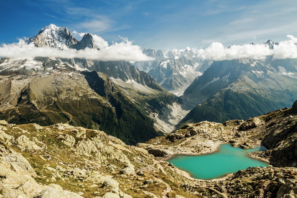 <Die letzte Etappe deiner Aktivreise auf der Tour du Mont Blanc verläuft über den sogenannten Südbalkon, ein beliebtes Wanderziel rund um Chamonix. Nach einem unkomplizierten Aufstieg erwartet dich am Ende ein spektakuläres Panorama auf den Lac Blanc – sicherlich eines der eindrucksvollsten Highlights der Wanderung. In der Lac Blanc-Hütte kannst du eine wohlverdiente Mittagspause einlegen, bevor du weiter nach Chamonix hinabsteigst. Den restlichen Nachmittag kannst du in Chamonix verbringen und deine 10-tägige Aktivreise auf dem Fernwanderweg Tour du Mont Blanc mit einem traditionellen Abendessen ausklingen lassen.