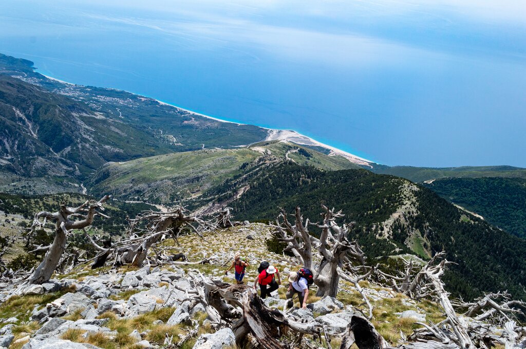 <Das heutige Ziel ist der Qorre-Gipfel, der sich auf einer Höhe von 2018 Metern erhebt und der zweithöchste Gipfel des Ceraunian-Gebirges ist. Im Südosten geht der Berg Çikë steil ins Meer über: ein Höhenunterschied von mehr als 2000 Metern auf weniger als 5 Kilometern. Besonders im oberen Teil gibt es sehr steile Berghänge. Der Weg zum Gipfel ist gut sichtbar, aber steil. Oben angekommen werden Sie mit einer herrlichen Aussicht belohnt: wilde Berge