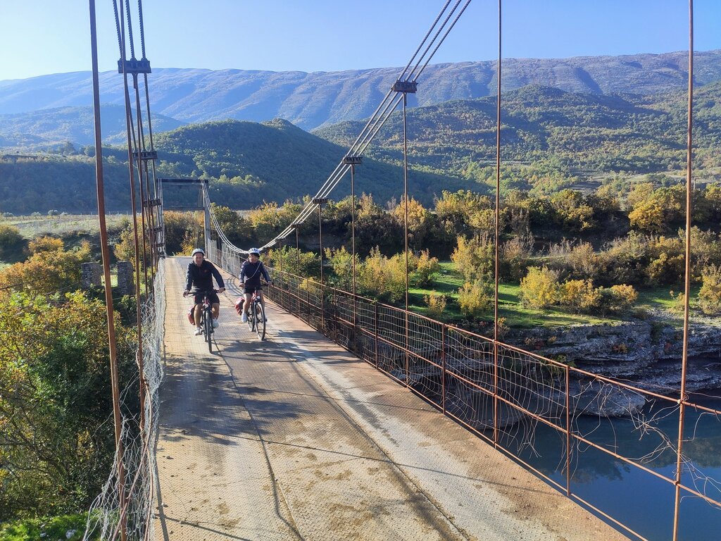 <Nach einem herzhaften Bauernfrühstück machen Sie sich auf den Weg nach Leskovik, wo Sie eine malerische Abfahrt genießen können, die Sie näher an den Vjosa-Fluss bringt, Europas letzten Wildfluss. Während Sie durch das Tal radeln, können Sie die herrliche Aussicht auf die umliegende Landschaft genießen, die von dramatischen Bergen und üppigem Grün geprägt ist.
