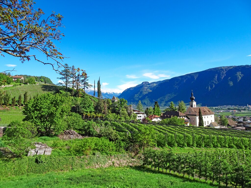 <Zunächst führt die Strecke nach Glurns, wo Sie die vollständig erhaltene mittelalterliche Stadtmauer erkunden können, und zu den Montaniruinen, die ehemals zum Verteidigungssystem des Vinschgaus gehörten. Ihre ständigen Begleiter sind die Bergpanoramen, immer wieder fällt der Blick auf den Ortler und das Stilfserjoch. Juval, säumen die Route ins bezaubernde Meran. Mit der Vinschgaubahn kürzen Sie die Etappe beliebig ab.