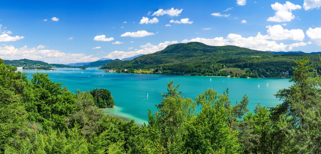 <Auf schön angelegten Dammwegen, durch Wiesen und Felder und vorbei an kleinen Weilern „radwandern“ Sie in Richtung des riesigen Völkermarkter Stausees. Nun heißt es Abschied nehmen vom treuen Weggefährten Drau, damit Sie in den Genuss des herrlich gelegenen Klopeiner Sees kommen. Stillen Sie Ihre „Seensucht“ und lassen Sie Ihre Seele baumeln. -