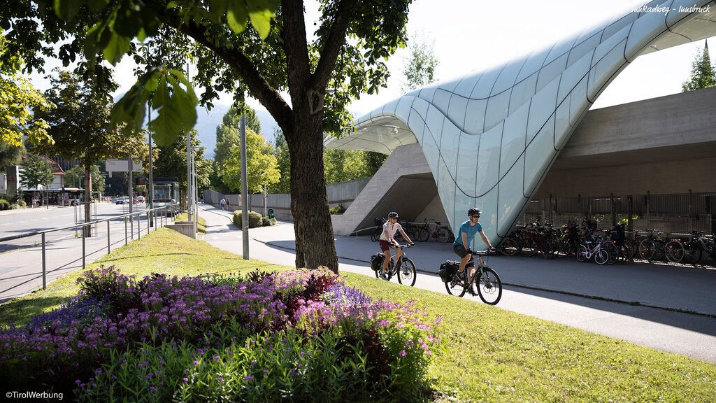 - Entlang der Haller Straße (östlicher Bereich) besteht die Möglichkeit zum kostenfreien Parken während der Dauer der Radreise (Änderung aufgrund politischer Entscheidungen vorbehalten). Gehzeit bis ins Zentrum von Innsbruck ca. 20 Minuten.