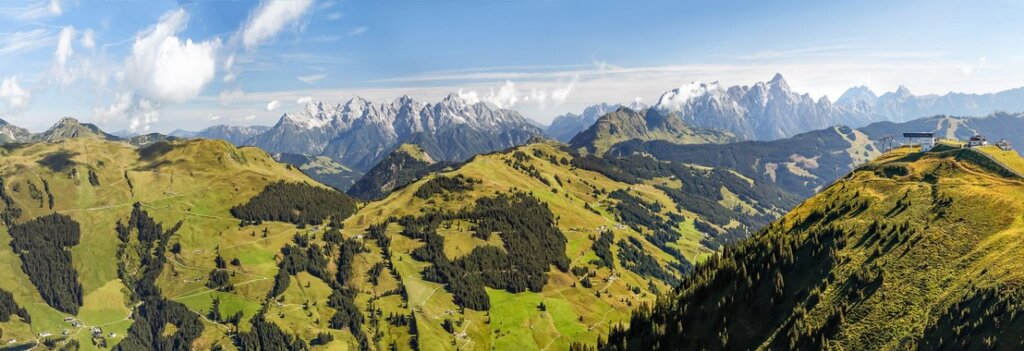 <Vom Schattberg aus startest du auf den Pinzgauer Spaziergang – ein wunderschöner Höhenweg, der dir atemberaubende Ausblicke auf die Eisgipfel der Hohen Tauern bietet. Während der gesamten Wanderung breitet sich das rund 1.000 Meter tiefer liegende Salzachtal zu deinen Füßen aus. Majestätische Gipfel wie der Großglockner, das Kitzsteinhorn, die Granatspitze, der Sonnblick und der Großvenediger begleiten dich auf dieser unvergesslichen Tour.