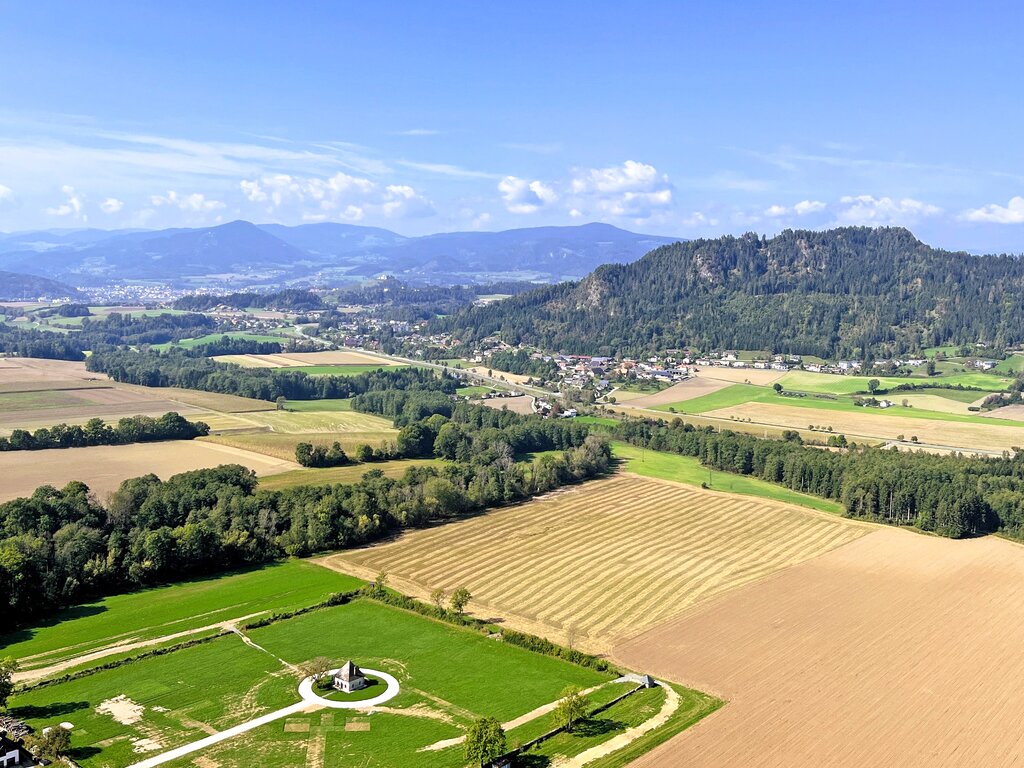 <Vom Klopeiner See radeln Sie zurück an den Völkermarkter Stausee und über den Glan-Gurk-Radweg in die Herzogstadt Völkermarkt, der Hauptstadt des Jaunatals. Herrliche Ausblicke auf die Kärtner Landschaften begleiten Sie zur Burg Hochosterwitz. Es ist schon erstaunlich, was die Natur erst und die Menschen später dort vollbracht haben. Mitten auf dem Feld steht ein 150 Meter hoher Kalkfelsen, der nach allen Seiten steil abfällt und zu einer uneinnehmbaren Festung ausgebaut wurde. Zahlreiche Burgen und Schlösser in der Umgebung erinnern an die frühere Bedeutung der einstigen Landeshauptstadt St. Veit.