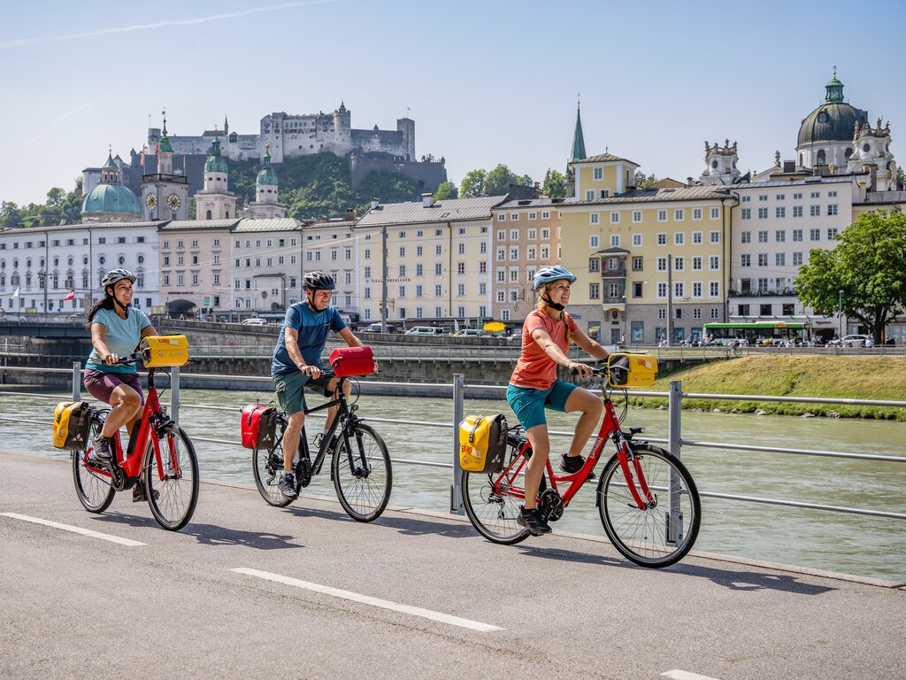 <Toureninformation und Radübergabe. Bei Anreise Trumer Seen verschieben sich die nachstehenden Tagestouren entsprechend (diese Gäste beginnen die Tour mit der am 3. Tag beschriebenen Strecke und radeln Salzburg - Trumer Seen am letzten Radtag).