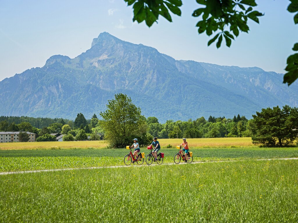 <Raus aus Salzburg und ab in Richtung Süden. Durch schattige Auen entlang der Salzach radeln Sie nach Hallein, einer früher durch den Salzabbau reichen Keltenstadt. Hallein überrascht mit einer romantischen Altstadt mit kleinen Gassen, Torbögen und Häusern mit prächtigen Fassaden. Vorbei am rauschenden Wasserfall passieren Sie Golling und rollen am gut ausgebauten Radweg weiter bis nach St. Johann. Unverkennbar - wie doppelte Berggipfel - ragen hier die Türme des Pongauer Domes empor. -