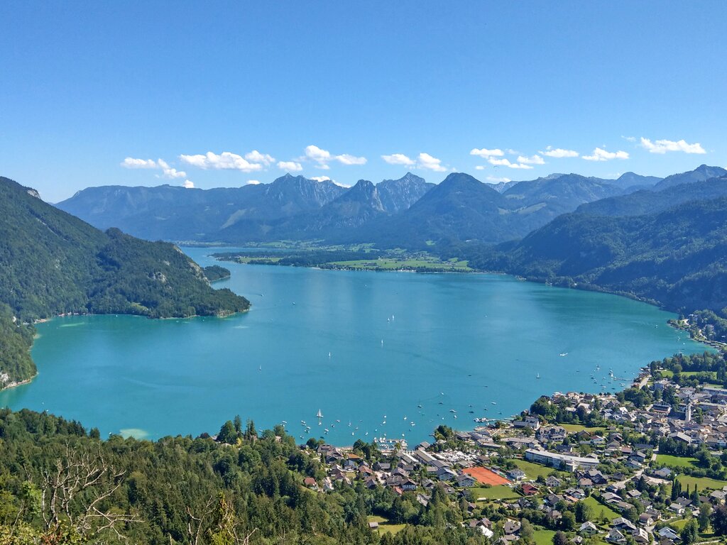 <Schweben Sie mühelos auf den Berg bis zum Gipfel des Zwölferhorns. Hier sind Sie 1000m höher als die grünblaue Wasserfläche des Sees. Fantastisch ist der Ausblick bis zum schneebedeckten Dachstein. Der Höhenrundweg und die Almenrunde zum Spitzeck bieten Panoramablicke vom Feinsten. Nach der Einkehr in einer urigen Berghütte gondeln Sie vergnügt ins Tal.