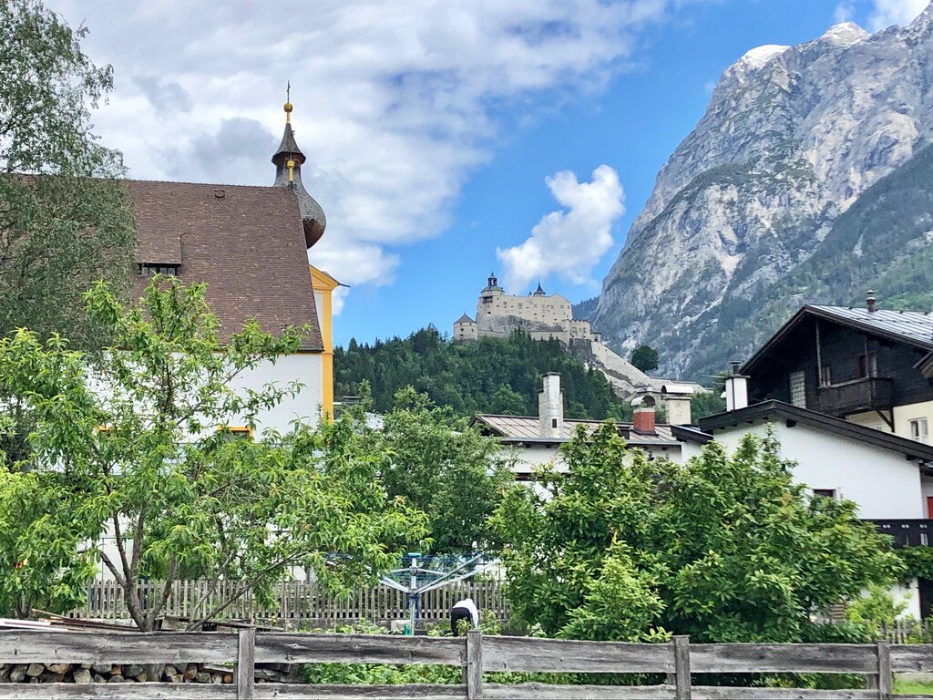 <Von Golling radeln Sie hinauf zur Pass Lueg-Höhe, genießen den Ausblick auf das herrlich markante Tennengebirge. Immer näher rückt nun der Berg an die Salzach und immer lauter wird das Grollen des Wassers. Sie passieren die so genannten "Salzachöfen", eine imposante, von der Salzach geschaffene Schlucht. Nach Werfen mit seiner hoch aufragenden Burg ist bald St. Johann erreicht. Unverkennbar - wie doppelte Berggipfel - ragen hier die Türme des Pongauer Domes empor.