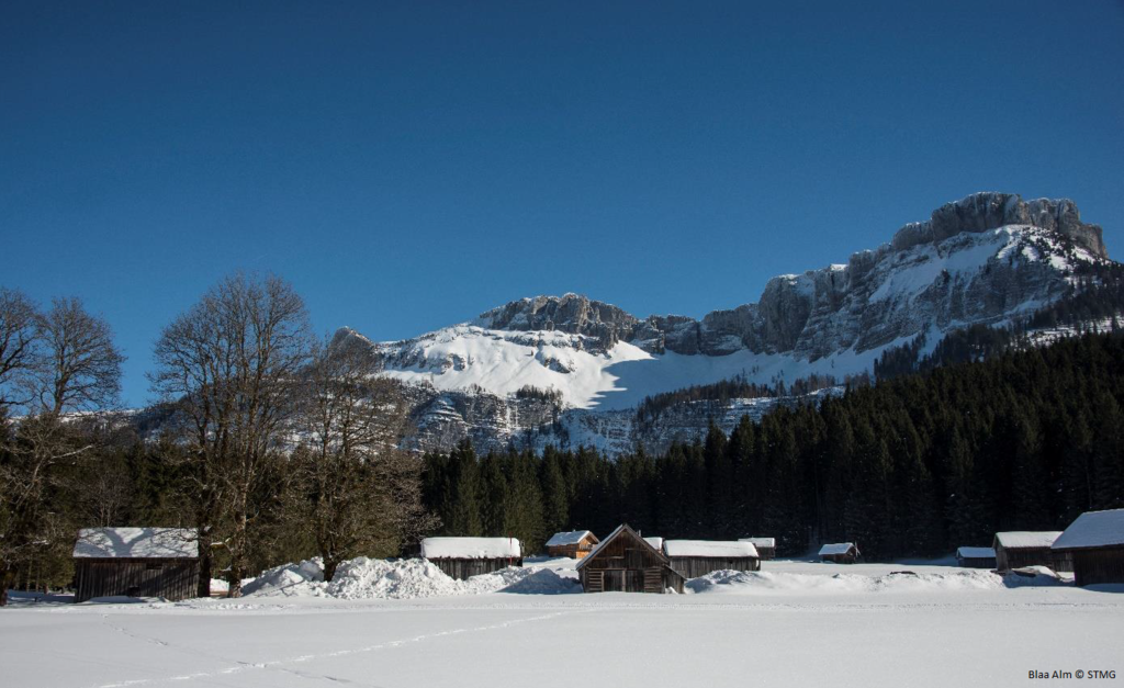 Wer eine gemütliche Schneeschuhwanderung in traumhafter Kulisse sucht, wird auf der Blaa-Alm fündig. Von der Loser Ski-Arena startet man in Richtung Blaa Wirtshaus mit Einkehrmöglichkeit; vorbei geht es am sogenannten Blaa-Eck und über verschneite Wiesen. Diese Schneeschuhwanderung, mit einem geringen Höhenunterschied, ist die perfekte Tour zum Ausklingen der Reise. Nach dem Abstieg fahren Sie mit dem Bus zurück nach Bad Aussee. -