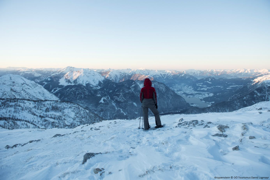 Von der Bergstation des Krippensteins nehmen Sie noch einmal die Gondel – diesmal zur Gjaidalm, die sich für eine kurze Stärkung anbietet. Das Karstplateau nördlich des Hohen Dachsteins ist ein wunderbares Revier für technisch einfache Schneeschuhtouren. Die Blicke schweifen dabei über das Salzburger Land sowie zu den Gletschern und Felsburgen der Dachsteingipfel. Durch diese wunderbare Naturlandschaft folgt der Weg dem sanften auf und ab bevor Sie beim Wiesberghaus auf 1.882 Meter die Sonnenterasse genießen können. Schließlich geht es wieder zurück zur Seilbahnstation und gondeln wieder zu Tal, wo Sie die Eindrücke des Tages Revue passieren lassen können. -