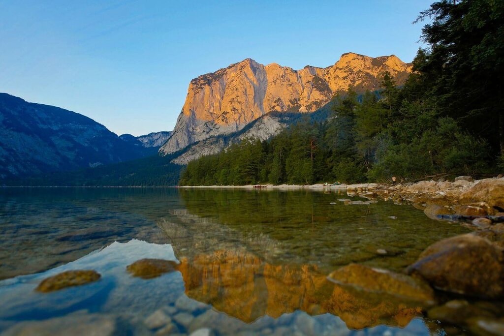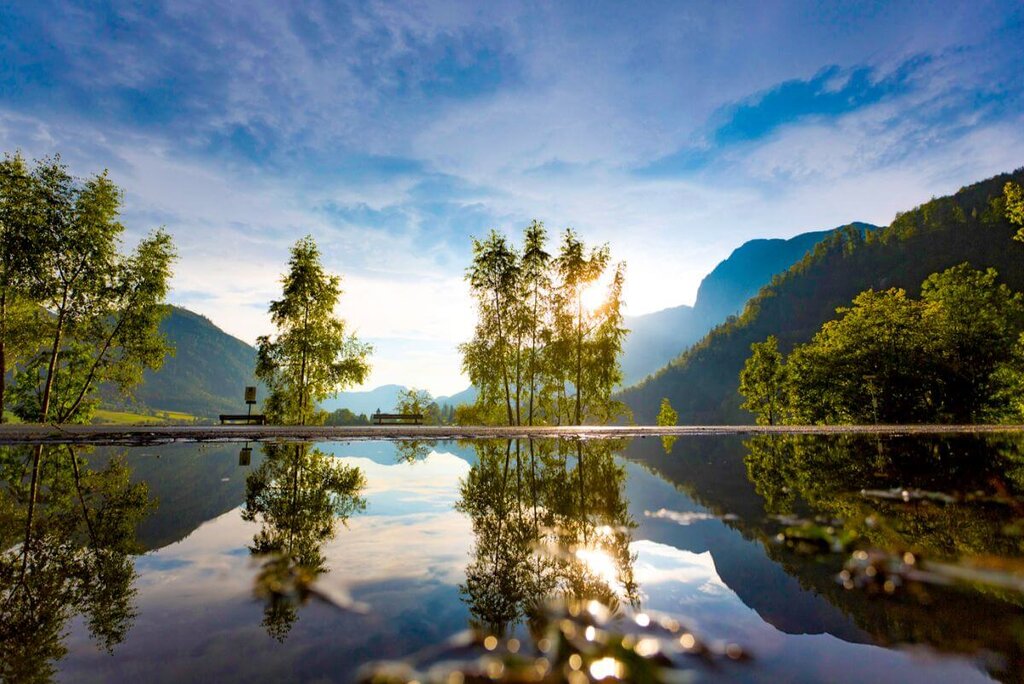 <Vormittags Transfer nach Gosau. Möglichkeit zu einer Radtour zum Vorderen Gosausee mit herrlicher Aussicht auf das Dachsteinmassiv. Zurück entlang des Gosaubaches an den Hallstättersee und weiter entlang der Traun zurück nach Bad Goisern.