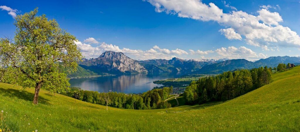 <Zunächst entlang der Traun nach Bad Ischl. Die Ischler Ache geleitet bis an den Wolfgangsee und weiter nach St. Wolfgang. Wenn Zeit bleibt sollte nicht nur das Weiße Rössl und die Stiftskirche besichtig werden – eine Auffahrt mit der Zahnradbahn auf den Schafberg lohnt sich sehr! Mit kurzer Fährfahrt ist das andere Seeufer erreicht und der Radweg führt über den Nussensee zurück ins Hotel.