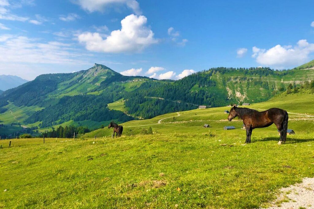 Erfreuen Sie sich der Fernblicke auf den Wolfgangsee, ins Tote Gebirge, zum Dachsteingletscher und in die Hohen Tauern und genießen Sie bei einer Rast auf einer der zahlreichen Almen regionale Spezialitäten wie Apfelstrudel, Kaiserschmarrn und die köstlichen „Pofesen“, eine Süßspeise besonders typisch für die Osterhorn-Berge! Die Osterhorngruppe ist ein grünes Berggebiet östlich von Salzburg mit besonders vielen und vor allem sehr lieblichen wie urigen Almen. Ein Weide-Paradies für Kühe, Schafe, Pferde und ein Urlaubsparadies für Wanderer! Entdecken Sie unendliche Hochweiden, einsame Wanderwege, tiefe Gräben mit rauschenden Bächen, idyllische Waldstücke und zahlreiche hölzernen Almhütten. Felsige Gipfel umrahmen saftige grünen Wiesen, das Klingeln der Kuhglocken begleitet Ihren Weg.