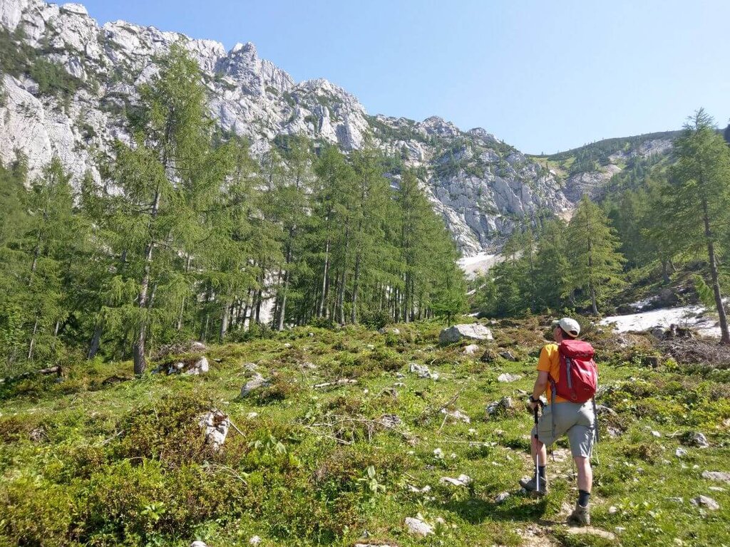 <Heute tauchen Sie in die Hochflächen der Almregionen ein. Von Abersee starten Sie durch die eindrucksvolle Schlucht des Zinkenbaches, der sich durch steile Felswände seinen Weg bahnt. Sie wandern durch einsames Waldgebiet hinauf zur Königsbachalm, bis zum Talschluss unterhalb der Gipfelflanken des Königsberger Horns. Ein Wanderpfad im Wetzsteingraben führt durch angenehm schattigen Bergwald schließlich auf die Genneralm, wo Sie in einer gemütlichen Alm übernachten und zwei Tage inmitten saftiger Weiden gekrönt von zahlreichen Gipfeln verbringen. -