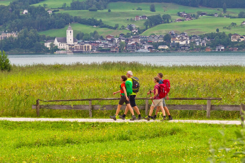 <Per Bahn geht es nach Bad Ischl. Entlang des romantischen Sissi-Weges wandern Sie zum Nussensee und anschließend folgen Sie der Ischl zurück an den Wolfgangsee. Der Seeuferweg führt durch das Blinklingmoos und entlang des Sees zurück in Ihr Etappenziel.