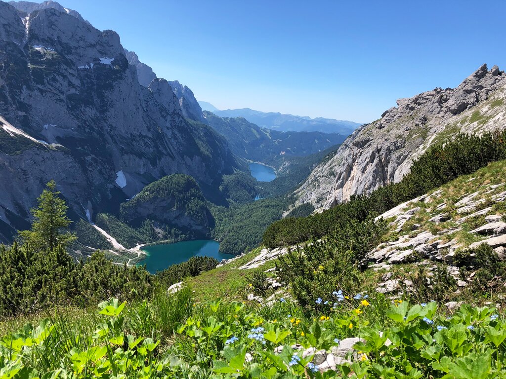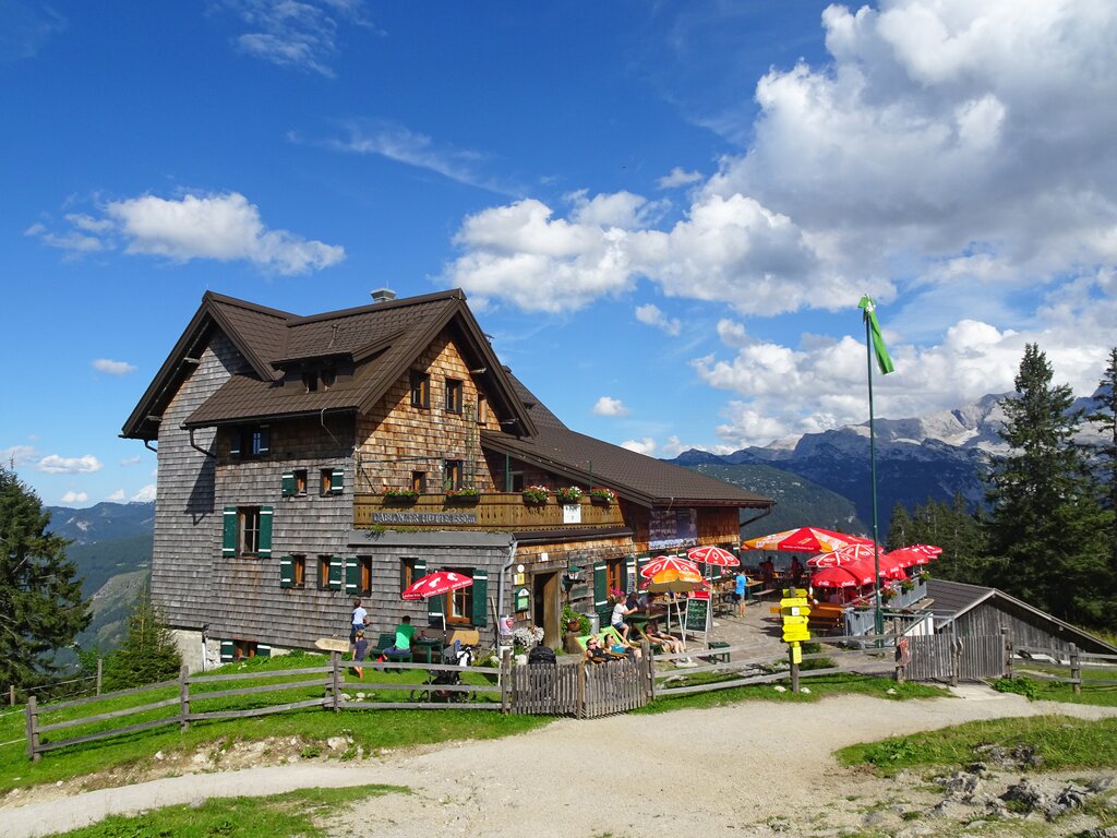 <Über den Treppensteig zur Gedenkstätte „Heilige Mutter Anna“ und auf Forstwegen abwärts, wo bald der Anstieg über Almweiden zur Stuhlalm beginnt. Unter den mächtigen Felswänden des Gosaukammes führt Ihr Weg auf dem Austriaweg zum Törleck mit der Gablonzer Hütte und mit Blick auf den Gosausee, den Donnerkogel und den Dachstein-Gletscher. Einkehr und Seilbahnfahrt zum Gosausee.