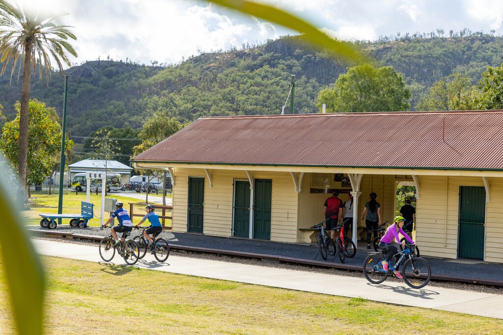 <Auf dem Weg nach Yarraman kommen Sie heute durch zwei Städte: Blackbutt und Benarkin. Obwohl Sie die Blackbutt Range hinauffahren, radeln Sie glücklicherweise auf einem Schienenweg mit einer beträchtlichen, aber überschaubaren Steigung. Auf diesem Abschnitt bieten sich großartige Aussichten, wenn Sie aus dem Brisbane Valley in die Blackbutt Ranges aufsteigen, die Teil der Great Dividing Range sind. Während des Anstiegs werden Sie feststellen, dass sich Klima, Boden und Vegetation deutlich von den Ebenen unterscheiden. Wenn Sie die höher gelegenen Teile dieser Region erreichen, wird der Hauptgrund für den Bau des Eisenbahnsystems deutlich. Eine Baumart hat der Stadt Blackbutt ihren Namen gegeben, aber es gibt hier auch riesige Bestände von Reifenkiefern, Zedern und anderen hochwertigen Laubhölzern. Die Dampflokomotiven sind schon lange verschwunden und werden nun von Radfahrern ersetzt, die demselben Weg folgen. Die erste Stadt des Tages ist Benarkin, die zwar recht klein ist, aber über großartige öffentliche Einrichtungen im Park direkt am Weg verfügt und auch einen kleinen Laden für Getränke und Snacks besitzt. Dann ist Blackbutt ein großartiger Mittagsstopp mit Cafés und der wahrscheinlich besten Bäckerei auf dem BVRT mit einer riesigen Auswahl an Kuchen, Aufschnitt, Snacks und Kaffee. Nach Blackbutt sind es noch 19 km bis zu unserem Ziel für die Nacht in Yarraman und der Fertigstellung des ersten der beiden Railtrails. Der BVRT ist geschafft, der KKRT liegt noch vor uns.
