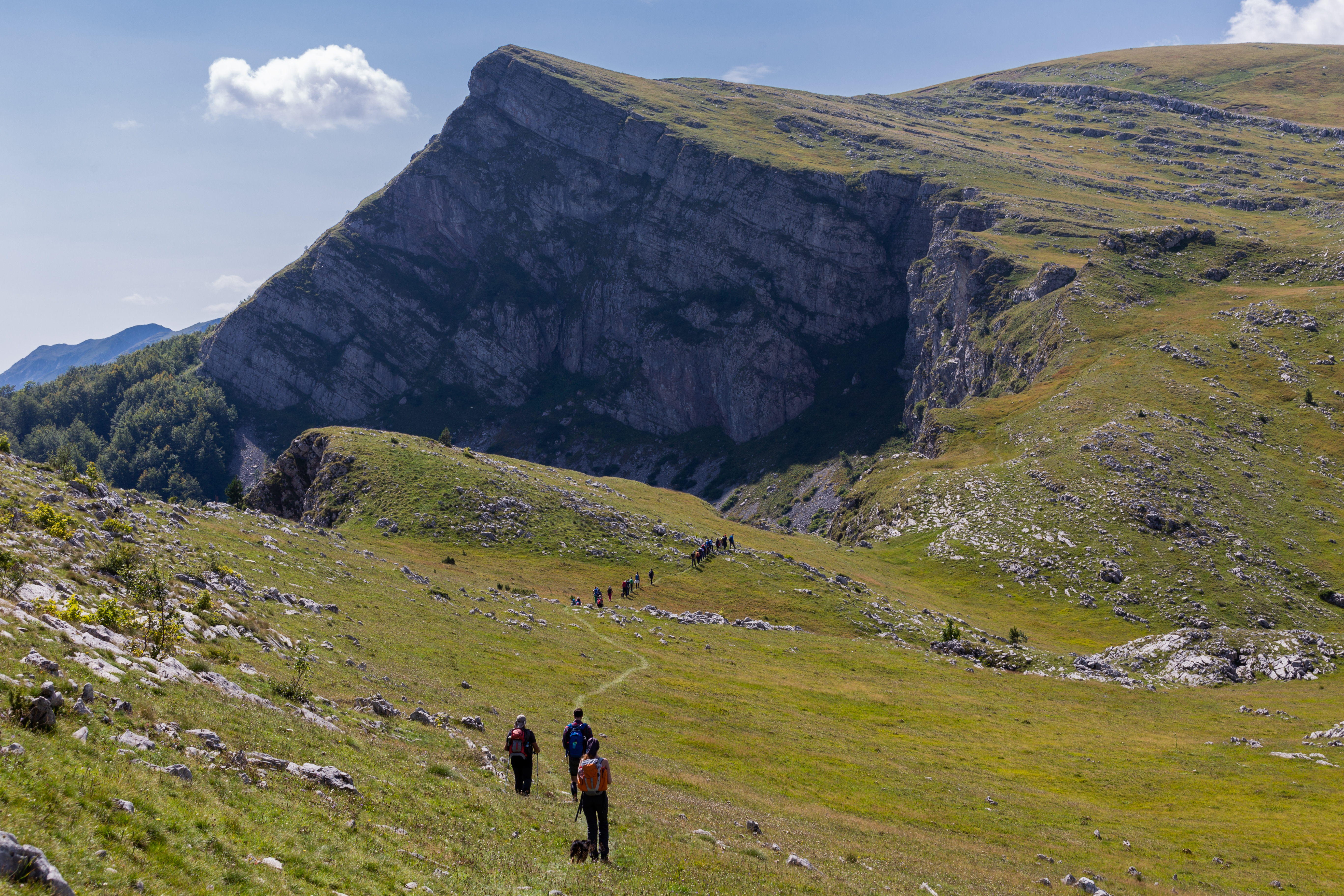 <Am diesem Tag beginnt die Wanderung auf dem Weg zurück zum Dorf Umoljani. Nachdem Sie den örtlichen Friedhof passiert haben, erreichen Sie nach etwa 20 Minuten eine Kreuzung mit einem Wegweiser. Wir folgen dem Weg in Richtung des Dorfes Bobovica, der allmählich zum Grund der Rakitnica-Schlucht und des Flussbettes hinunterführt. Folgen Sie diesem alten Hirtenpfad bis zur Hängebrücke. Nach dem Überqueren der Brücke führt der Weg steil nach oben, auf die andere Seite der Schlucht. Die Navigation ist recht einfach, da das Gelände nicht viel Platz bietet, um den Weg zu verfehlen. Nehmen Sie sich Zeit, denn der Aufstieg ist an einigen Stellen sehr steil.