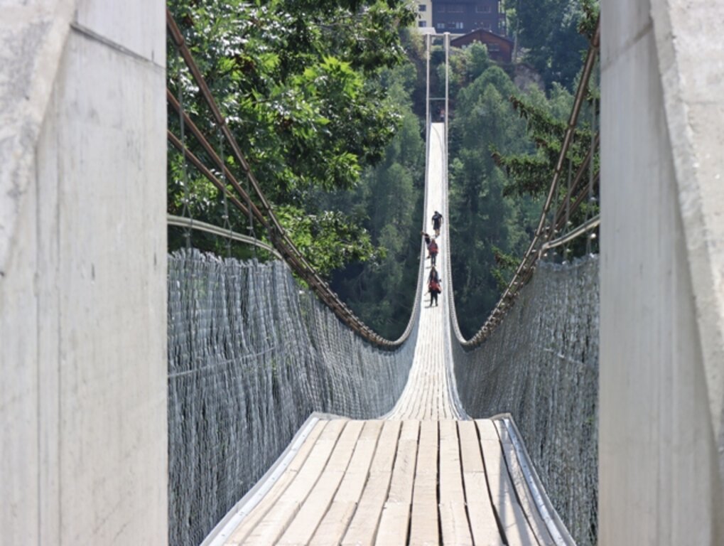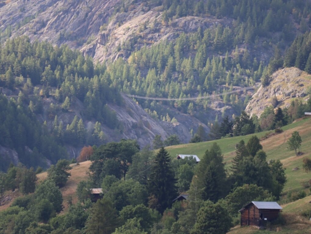 <Aussichtsreiches Wandern auf dem Höhenweg der BLS-Südrampe. Der beliebte Klassiker folgt den Bahngleisen der Lötschbergbahn zur imposanten Bietschtalbrücke. Herrlicher Suonenweg zur Hängebrücke; schöne Aussichtspunkte bei Brägji und Riedgarten. Mit dem Zug von Ausserberg nach Brig.