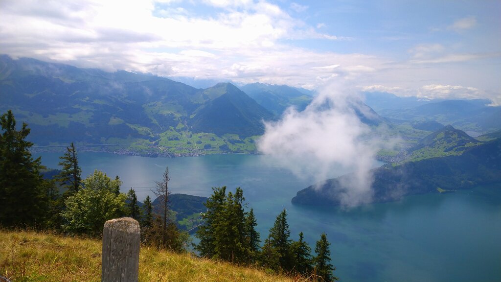 <Seilbahnfahrt hoch auf den Urmiberg. Nun weiter zum Gätterlipass und auf gut ausgebauten Wegen vorbei an Rigi Scheidegg nach Kaltbad.