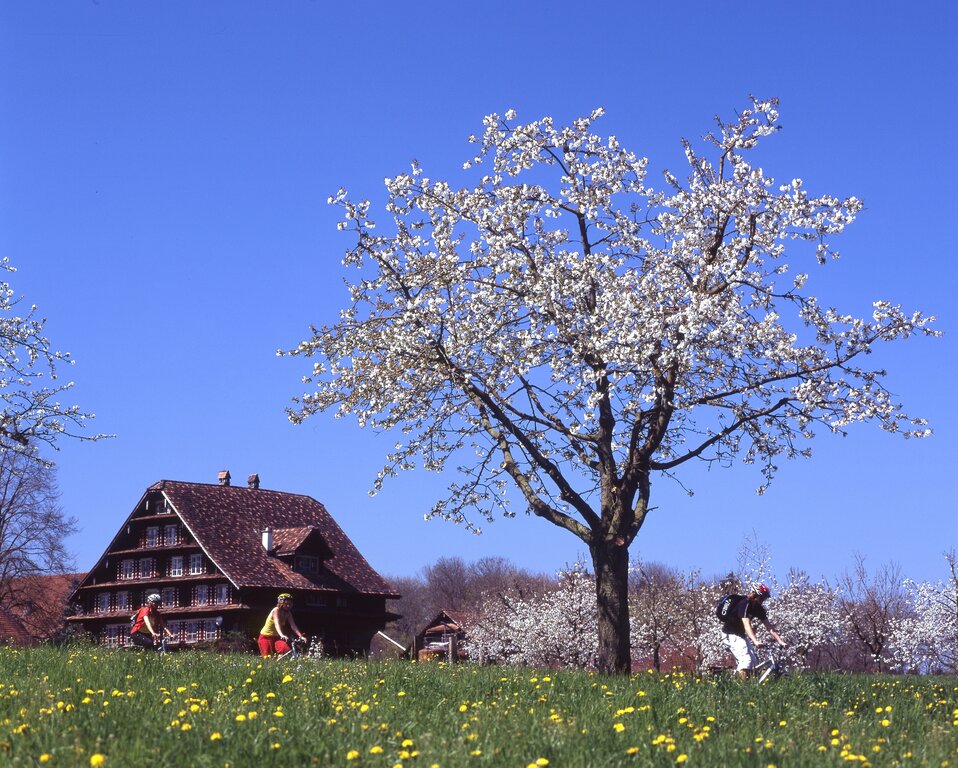 <Die kunstvoll verzierten Holzhäuser im Simmental gehören zu den schönsten Europas. Die Simme bleibt ein wildes Wasser, das Schlauchbootfahrer echt fordert. Weiter nach Spiez, ein Wassersportparadies am heiteren Thunersee