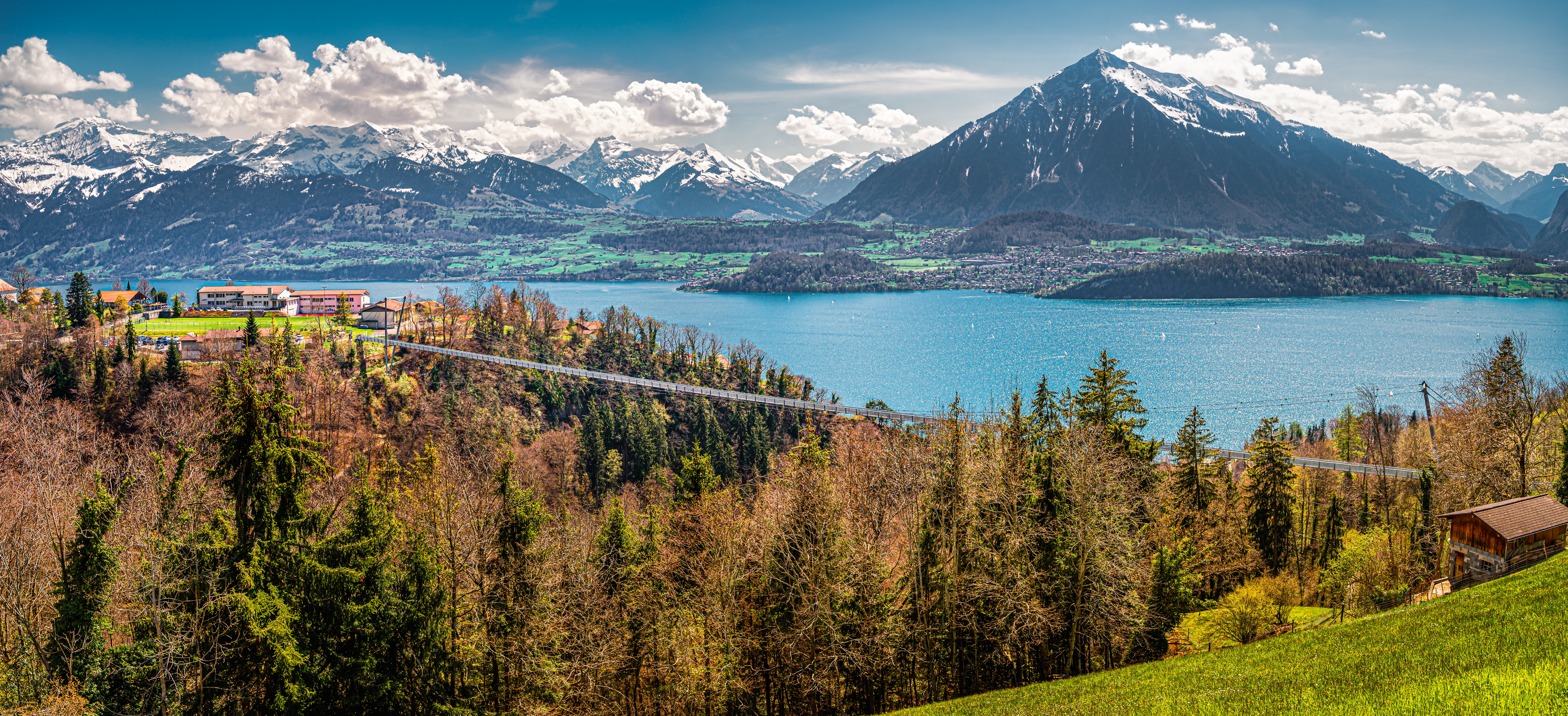 <Von der historischen Stadt Thun mit seinem mittelalterlichen Schloss führt die Wanderung vorbei an idyllischen Orten wie Hünibach und Aeschlen. Kurz danach wartet die spektakuläre Panoramabrücke Sigriswil hoch über dem Thunersee darauf, überquert zu werden.