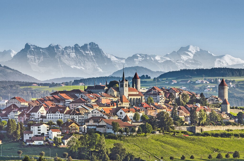 <Vom mittelalterlichen Murten dem Schiffenensee entlang über beschauliches, sanft gewelltes Land hin zu den gotischen Häusern von Freiburg, einer der schönsten mittelalterlichen Architekturzeugen Europas. Seit jeher ist in der zweisprachigen Stadt der Austausch der Kulturen lebendig.