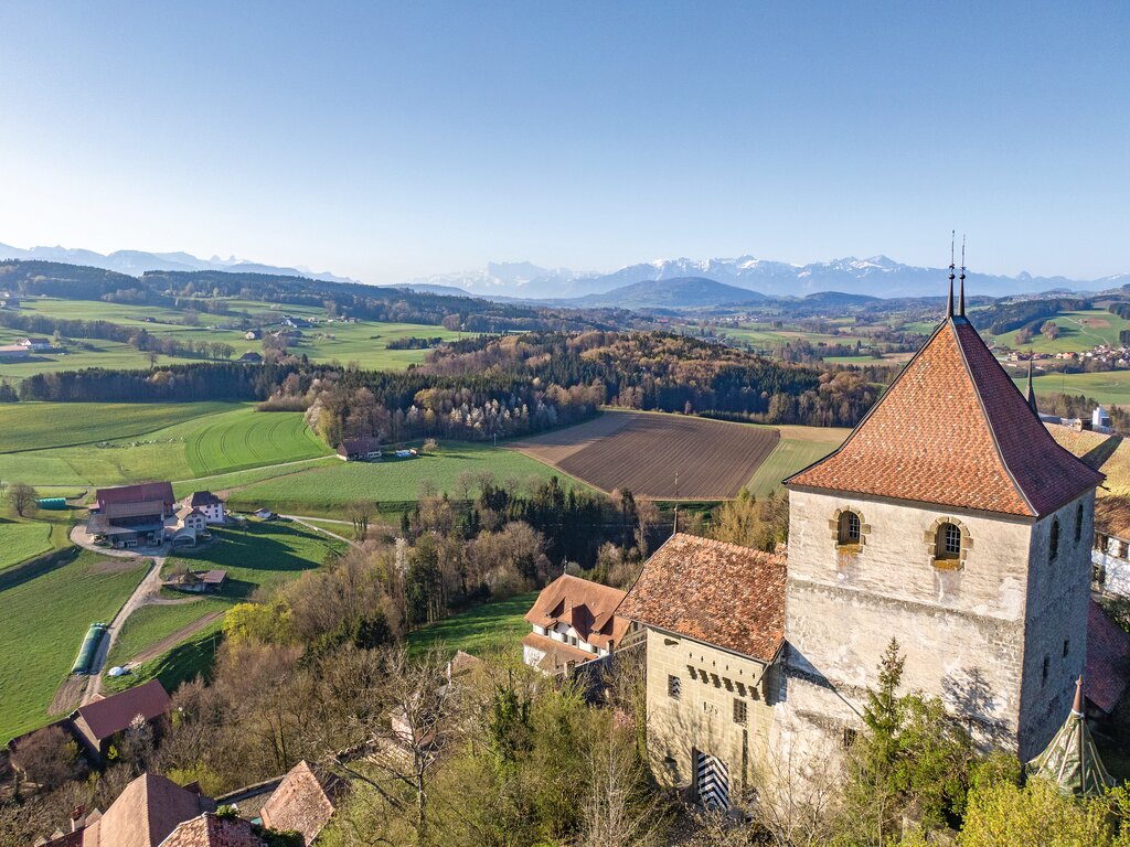 <Von Gruyères aus entlang der Seen-Route ins kleine Städtchen Bulle. Danach in stetem Auf und Ab über aussichtsreiche Kuppen und vorbei an plätschernden Bächen durch das Freiburger Hügelland. Schattige Waldstücke sorgen entlang dieser ländlichen Route auf dem Weg ins mittelalterliche Romont für Abwechslung.
