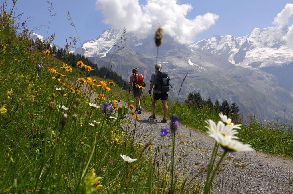 <Mit dem Zug fahren Sie früh morgens nach Lauterbrunnen und von hier mit der Seilbahn und der Bahn weiter nach Mürren. Die Trekkingroute führt vorbei an der Spielbodenalp zur Rotstockhütte. Nach einer kurzen Einkehr erklimmen Sie die Sefinenfurgge und steigen zur Pochtenalp oder zur Griesalp ab. Ein spektakuläres Stück.
