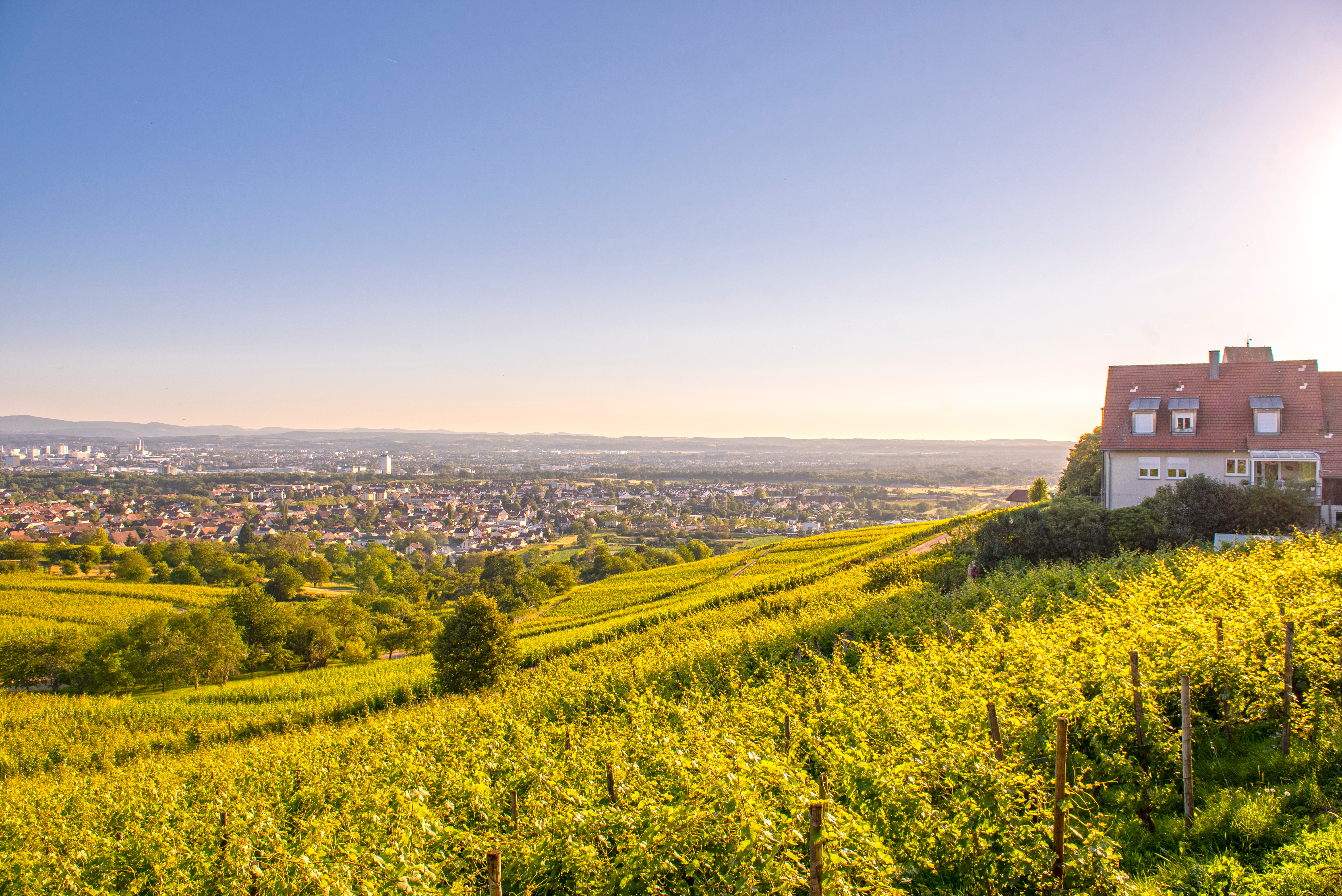 <Bis in die kleine Stadt Kandern ist die heutige Etappe wieder etwas hügelig. Danach geht es zügig hinunter ans Rheinufer nach Bad Bellingen. Es folgt ein kurzes Stück entlang des Rheins; danach wechseln Sie auf die andere Uferseite hinüber nach Frankreich. Besuchen Sie die sehenswerte Abteikirche in der kleinen Stadt Ottmarsheim bevor Sie die Stadt Mulhouse erreichen.