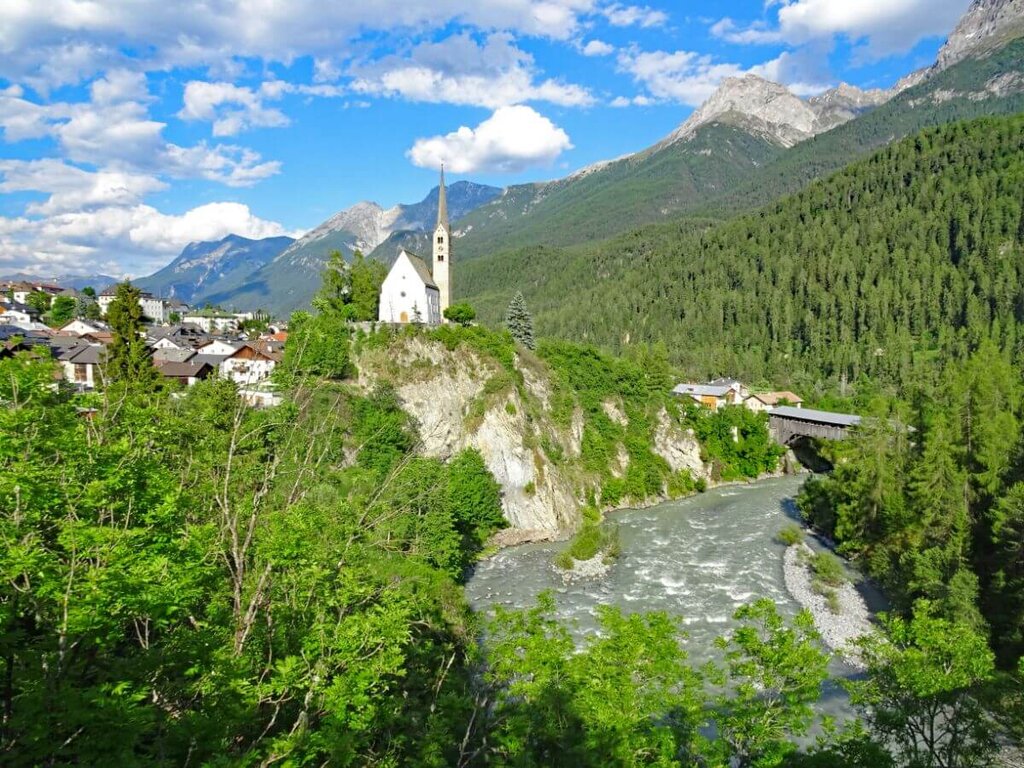 <Zunächst geht’s nach Lavin, das sich den Charakter eines alten Bergdorfes bewahrt hat. Der Ortsname des schmucken Dorfes Guarda („Schau!“) kommt von der herrlichen Aussicht die man hier genießt. Etappenziel ist Scuol, mit dem Erlebnisbad «Bogn Engiadina» und dem Schloss Tarasp, dem majestätischen Wahrzeichen des Engadin. -