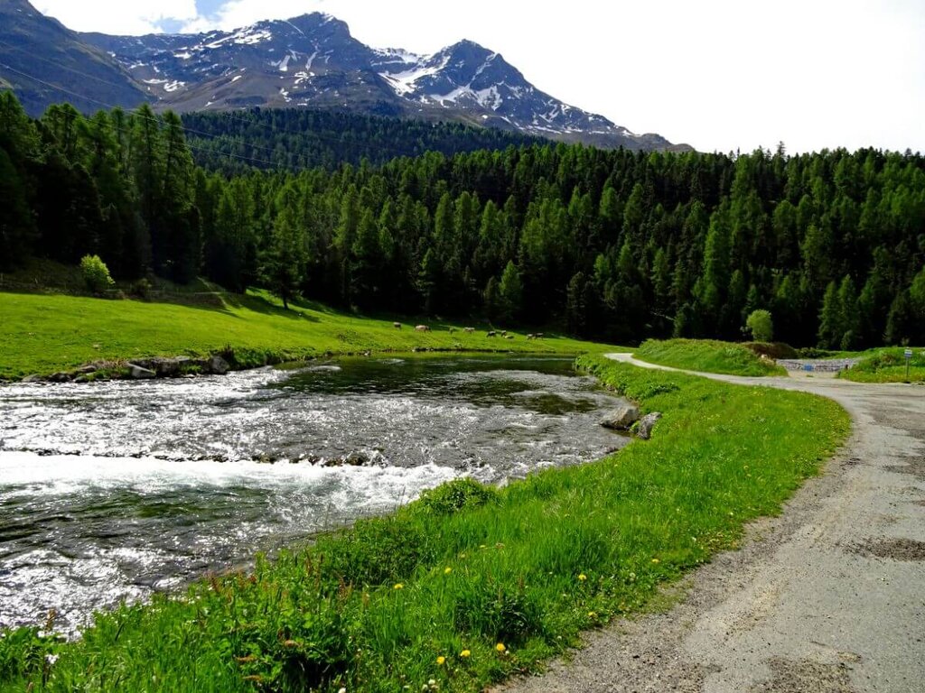 <Genießen Sie die faszinierende Umgebung von St. Moritz. Unternehmen Sie eine Seen-Radtour Richtung Inn-Ursprung. -