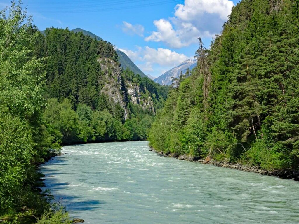 <Von Scoul erreichen wir über Martina die Grenze und radeln über Pfunds und Tösens nach Ried/Prutz. Den Inn entlang führt uns die Route zur berühmten Finstermünster Schlucht. Bemerkenswert sind die Ortskerne von Stuben und Pfunds in Tirol. -