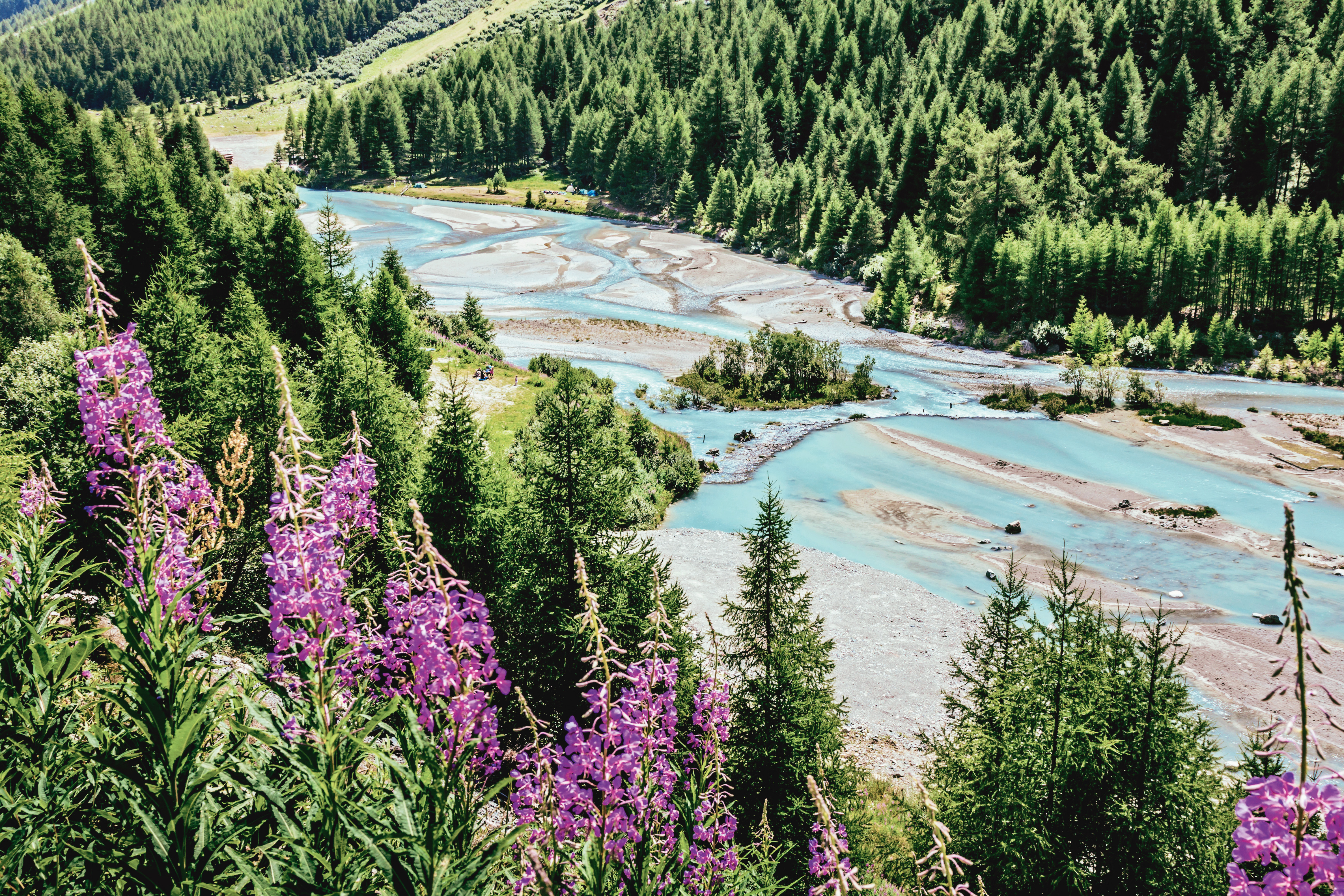 <Über Samedan (Alter Turm), La Punt (frühgotische San-Andrea Kirche mit Fresken) und Zuoz (Fenstermalereien in der Kirche San Luzi) nach Zernez. Wir radeln durch das Hochtal des Oberengadins. Zernez ist das Tor zum Nationalpark (Nationalparkhaus). -