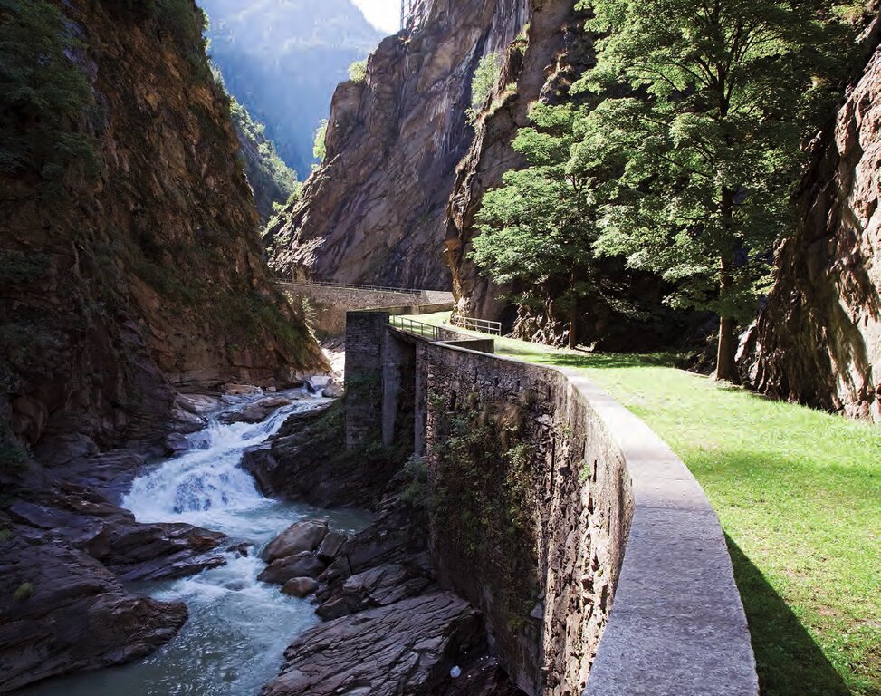 <Die Orte Göschenen und Andermatt spielen in der Geschichte des Gotthardverkehrs eine wichtige Rolle. Dazwischen die sagenumwobene Schöllenenschlucht -