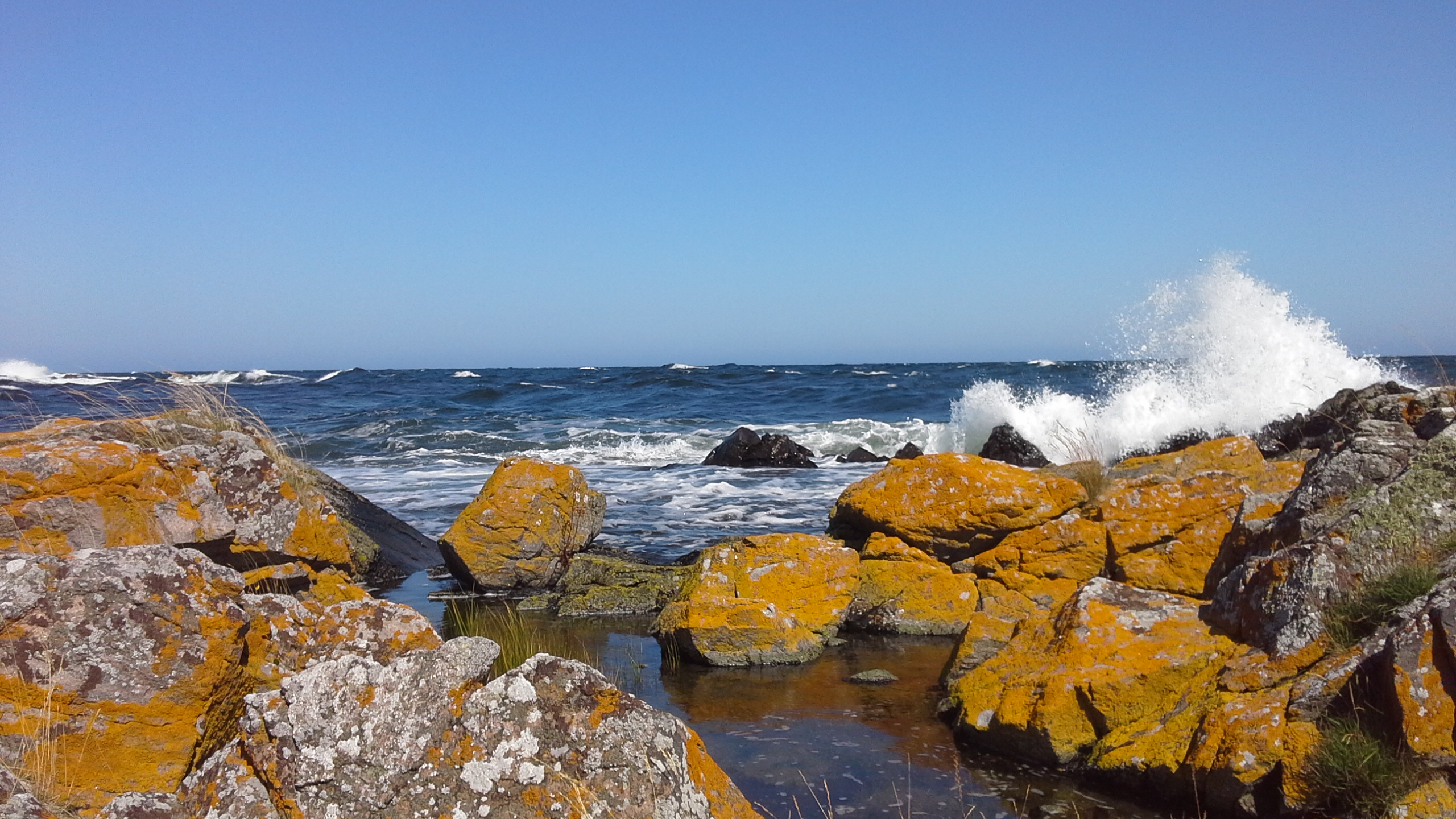 <Nutzen sie den Tag zu einer ausgiebigen Erkundung des Hammerknuten, dem Felsmassiv mit seiner Steilküste und den Wissen mit Wacholderheide (optionale Wanderung, ca. 15-30km). Diese lässt sich bei einer Rundwanderung ab bis Sandvig umwandern. Auch ein Bad am Strand von Sandvig hat seinen Reiz.