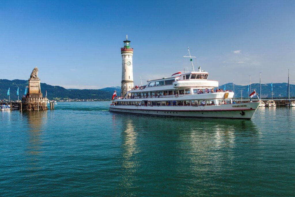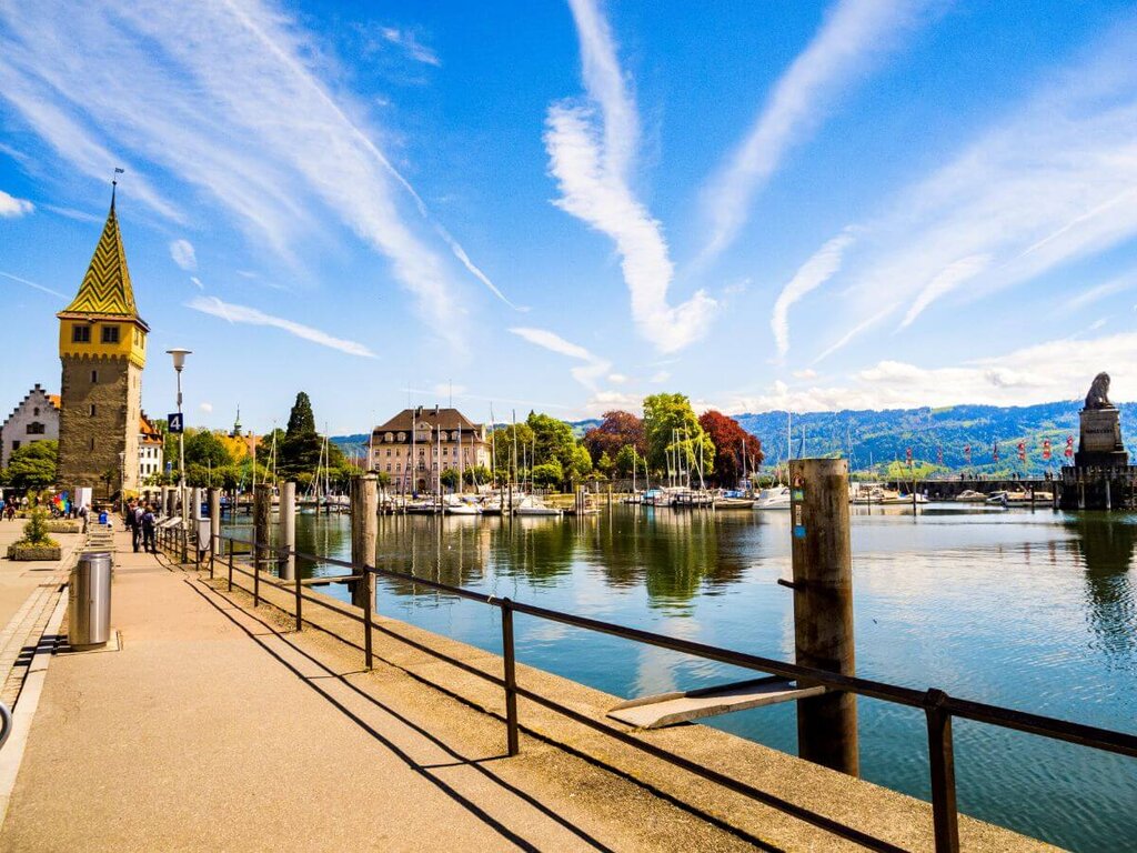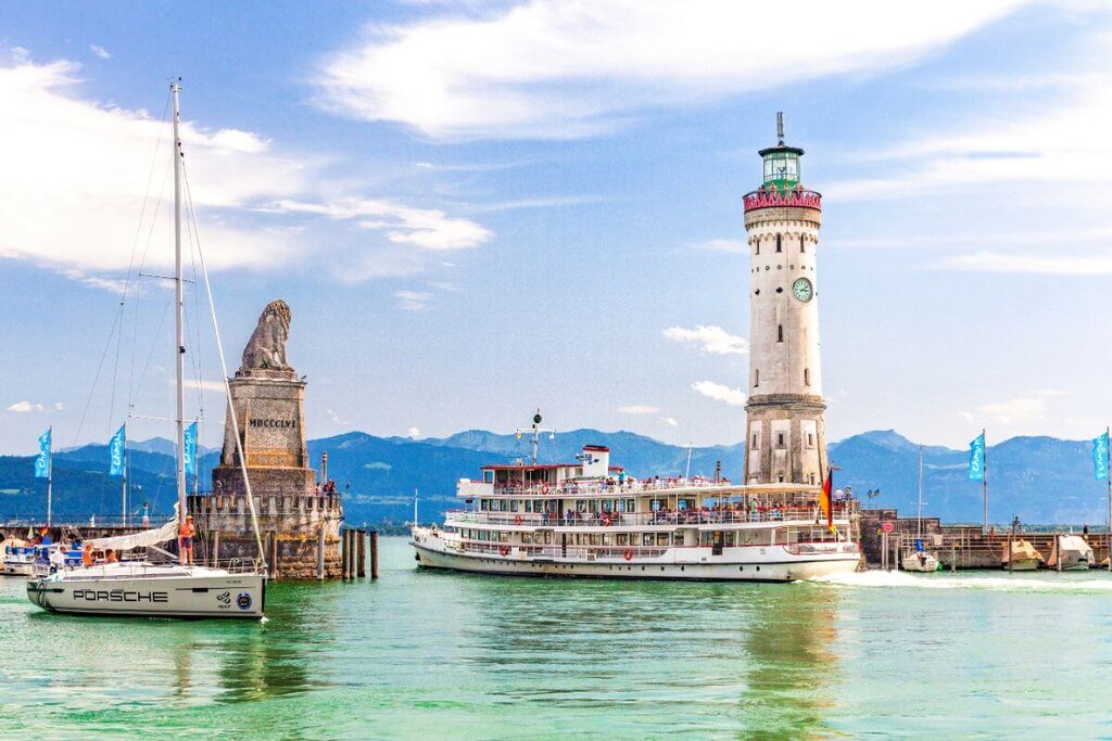 <Ihre Reise beginnt am Bodensee in Lindau, die schöne Altstadt ist vollständig auf einer Insel gelegen. Entdecken Sie die verwinkelten Gassen und die berühmte Hafeneinfahrt mit dem Leuchtturm und dem 6 Meter großen Bayerischen Löwen, dahinter erhebt sich das beeindruckende Alpenpanorama. -
