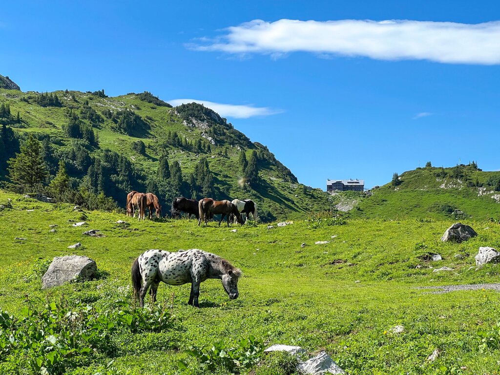 Durch einen Höhenwald gelangen Sie sanft ansteigend ins sehenswerte Walserdorf Warth. Ein Naturbadesee und die höchstgelegene Sennerei Vorarlbergs laden zu einer Rast ein.
