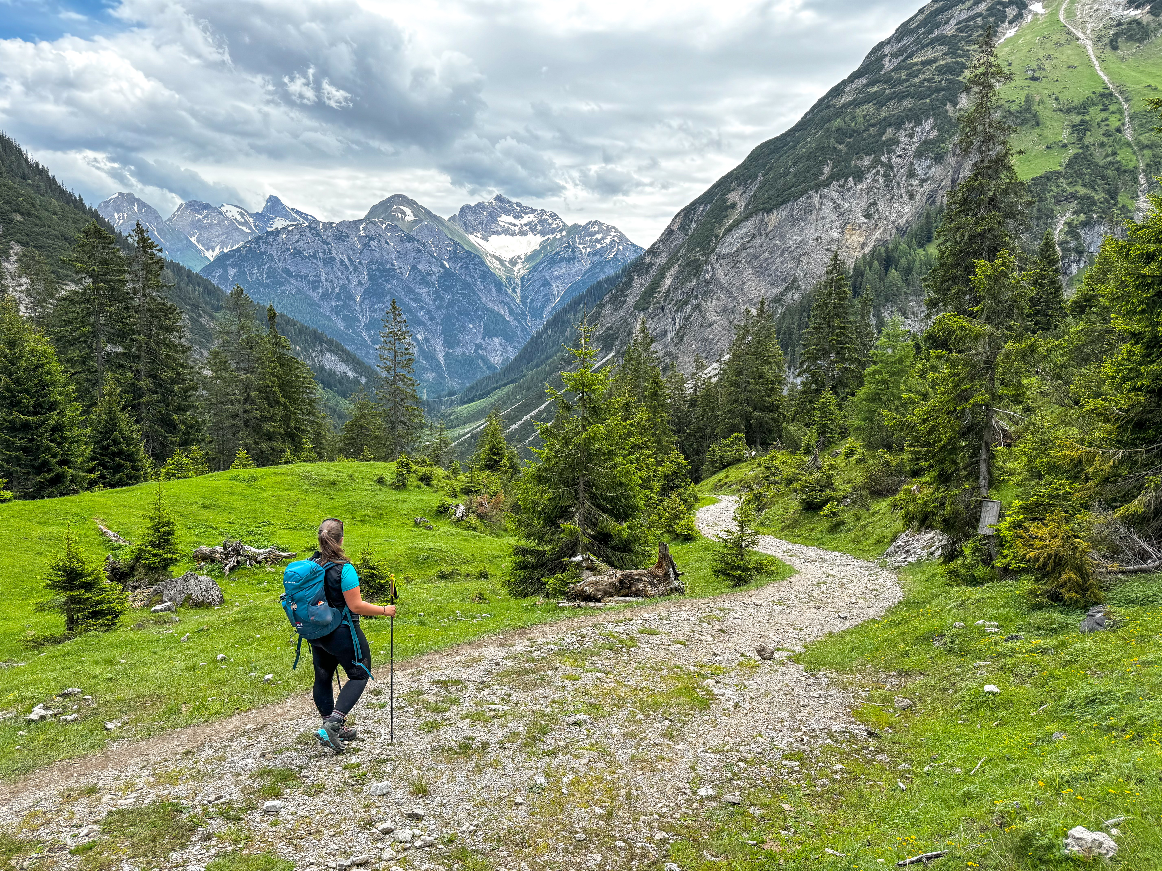 Hoch über dem Fluss geht es über grüne Almwiesen vorbei an grasenden Kühen, bald haben Sie beeindruckende Tiefblicke in die wilde Lechschlucht.