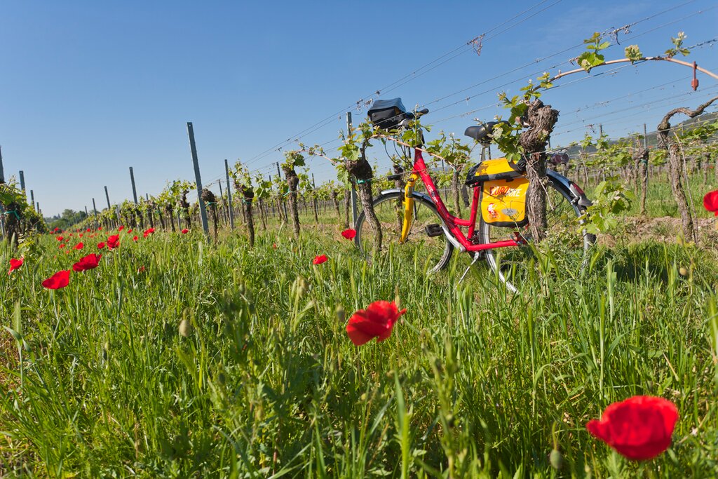 <Aus der Rheinebene geht es heute in das zweitgrößte deutsche Weinbaugebiet, an die Deutsche Weinstraße. Erleben Sie Weinkultur in kleinen und großen Winzergemeinden, viel Geschichte und Geschichten bis in die Zeit der Römer und probieren den sehr guten Pfälzer Wein. -
