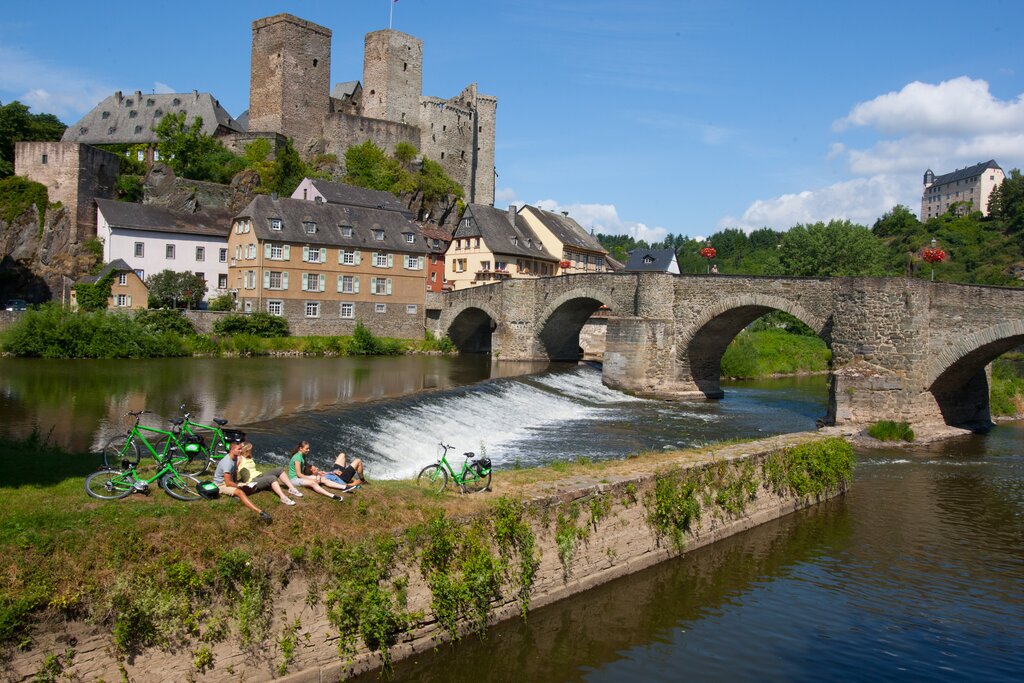 <Genießen Sie heute einen landschaftlichen Höhepunkt: abseits jeglichen Verkehrs durch eine unberührte Tallandschaft von Diez bis Balduinstein. Zwei Anstiege hält dieser Tag bereit, wobei Sie einen Anstieg bequem per Bahn umfahren können (11 km). Erholen Sie sich danach bei einer Pause am Kloster Arnstein, an der Burg Nassau oder im alten Wirtshaus an der Lahn, bevor Sie in Bad Ems einradeln.