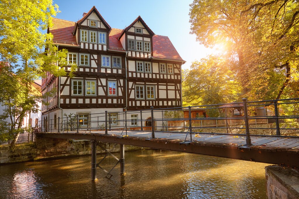 <Neue Ziele locken heute in den Sattel: Am Vormittag erreichen Sie den Ort Wechmar der 2003 zum „Schönsten Dorf Thüringens“ gekürt wurde und durch das Bach-Stammhaus (Museum) bekannt ist. Bald darauf liegt vor Ihnen am Wegesrand das markante Burgentrio, die Wachsenburg, die Mühlburg und die Burg Gleichen, genannt die Drei Gleichen. Unweit dieses Burgenensembles lockt eine der ältesten Gaststätten Thüringens zur Pause, ehe Sie am Nachmittag dem Lauf der Gera folgen und durch schönste Parkanlagen direkt ins Zentrum der alten Handelsstadt Erfurt geführt werden. Aus diesem mittelalterlichen Schmuckstück ragt der markante Dom mit Severikirche heraus und gilt die überbaute Krämerbrücke als Wahrzeichen dieser überaus sehenswerten Stadt.