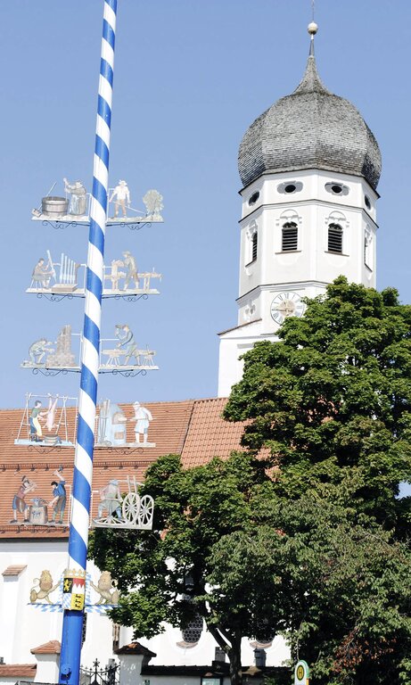 <Von Dießen über schöne Wiesenwege und vorbei an der Burgkapelle, hinein in den traumhaft einsamen Stiller Wald. Über aussichtsreiche Hügelkuppen führt Ihre Wanderung nach Wessobrunn, wo der berühmte graue Herzog (historischer Glockenturm) und das Naturdenkmal Tassilolinde zu bewundern sind. In der Ferne grüßt die Zugspitze. -